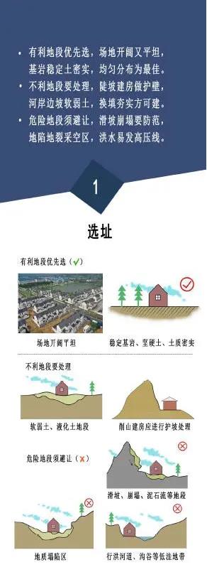 住房和城乡建设部组织编制的《“农村自建房安全常识”一张图》,以简明扼要、通俗易懂的文字描述和生动丰富的示例图片,从农房建设选址、布局、建造、使用和维护等方面作出安全提示,供各地在宣传工作中使用。要求各地结合住房和城乡建设系统“我为群众办实事”实践活动,采取多种方式广泛宣传这张图,让农房安全常识深入广大农村干部和群众心里,并可作为乡村建设工匠培训辅助教材,提升农房质量安全水平和建设品质,满足农村群众对美好生活的需要。