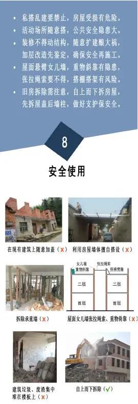 近日,住房和城乡建设部印发通知,要求各地加强农村自建房安全宣传工作,切实增强农村群众安全意识,并组织编制了《“农村自建房安全常识”一张图》,供各地在宣传工作中使用。