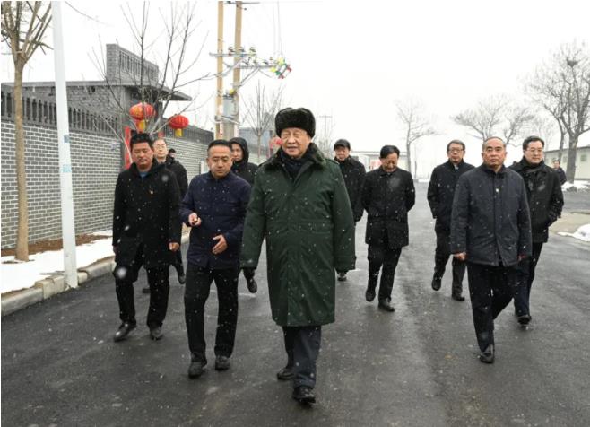 ▲1月26日至27日,中共中央总书记、国家主席、中央军委主席习近平来到山西,看望慰问基层干部群众。这是26日下午,习近平冒雪在临汾市霍州市师庄乡冯南垣村考察。图片来源:新华网