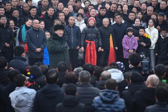 ▲1月26日至27日,中共中央总书记、国家主席、中央军委主席习近平来到山西,看望慰问基层干部群众。这是26日下午,习近平在临汾市汾西县僧念镇段村文化广场,给乡亲们拜年,向全国各族人民、向港澳台同胞和海外侨胞致以美好的新春祝福。图片来源:新华网