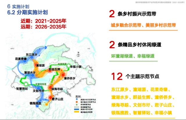 根据规划,仲恺高新区将形成“2212”乡村振兴总体空间格局,全力打造乡村振兴仲恺模板。“2212”中,城乡融合示范带、美丽乡村示范带等2条乡村振兴示范带,环潼湖绿道、幸福绿道等2条精品乡村休闲绿道,东江原乡等12个主题示范节点相得益彰,串联起全区乡村重点区域、项目节点、示范镇村等,形成格局整体、体系明晰、目标明确的乡村发展新局面,充分发挥城乡融合、乡村振兴的示范带动作用。