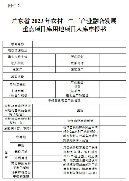 2.广东省2023年农村一二三产业融合发展重点项目库用地项目入库申报书