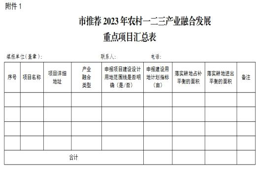 1.建立农村一二三产业融合发展用地重点项目库,是落实中央保障农业农村优先发展要求的实际举措,是有效促进农村三产融合发展的“小切口”,是推进乡村产业发展壮大的抓手。各市、县要高度重视,精心遴选报送一批符合农村三产融合发展需求的项目。