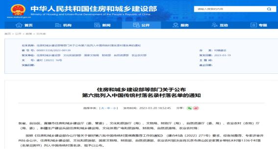 3月20日,住房和城乡建设部等部门发布通知,公布第六批列入中国传统村落名录的村落名单。全国共有1336个村落列入中国传统村落名录,其中广东有29个村落上榜,分布在汕头、河源、惠州、中山、江门、阳江、湛江、清远、潮州、揭阳等市。