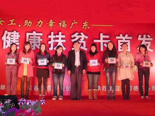 顺德区陈村工业园的外来女工代表喜获首批健康扶贫卡