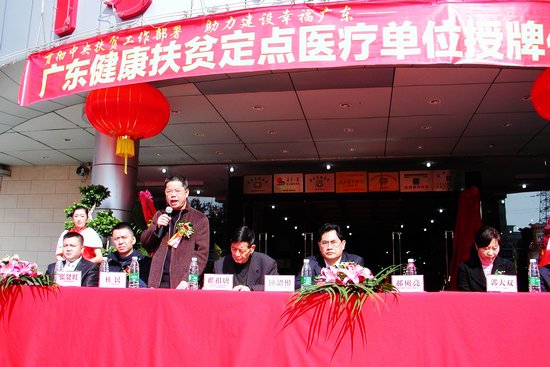 本网讯 12月19日上午,广东健康扶贫定点医疗单位授牌仪式在广州市天河区长泰门诊部举行,省扶贫开发协会为外来务工代表和社区贫困群体免费派发了健康扶贫卡,并向长泰门诊部捐赠了首批爱心扶贫药品。