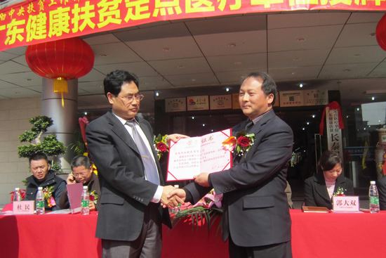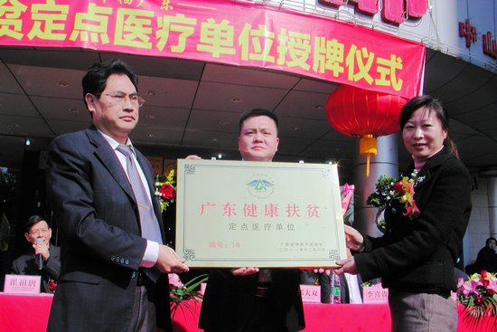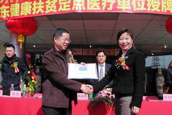 协会钟韶彬秘书长、天河区卫生局医政科刘艳忠共同向定点单位颁授广东健康扶贫定点医疗单位牌匾