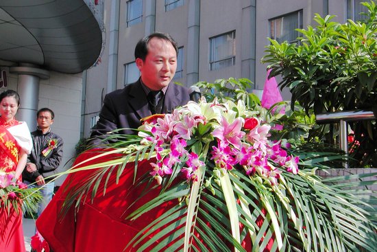 爱心企业南海朗肽制药有限公司总经理付廷灵发言