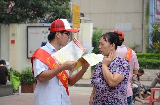 广东扶贫志愿者向社区群众宣讲广东扶贫形势与任务(摄/程景伟)