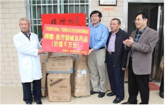 本网讯 为以实际行动贯彻落实党的十八大提出的“深入推进新农村建设和扶贫开发”的部署, 我省正式启动实施健康扶贫走进贫困村工程。近日,由省政府办公厅牵头,省扶贫开发协会联合省人民医院、中山大学公共卫生学院、广东省公共卫生事业发展基金会,在韶关乐昌市长来镇前溪村共同举办了“广东健康扶贫工程走进贫困村活动”的启动仪式。同时确认长来镇前溪村卫生站正式为广东健康扶贫首个村级卫生示范站,面向全体村民组织开展义诊义检和送医送药活动,标志着我省健康扶贫工程走进贫困村活动正式启动。活动当日,省政府办公厅赵松峰巡视员和省扶贫开发协会钟韶彬秘书长共同为我省首个健康扶贫村级卫生站示范点揭牌,并实地察看活动现场。