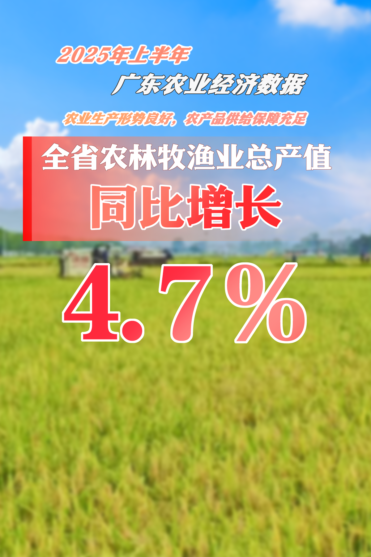 近日,广东省统计局公布了2025年上半年广东省经济运行数据,上半年,广东实现地区生产总值68725.40亿元,按不变价格计算,同比增长4.2%。其中,第一产业增加值2258.86亿元,增长4.2%。总体来看,农业生产形势良好,农产品供给保障充足;居民收入平稳增长,农村居民收入增速快于城镇居民。