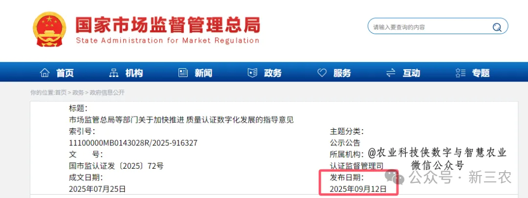 据市场监管总局网站9月12日消息,市场监管总局等部门发布关于加快推进质量认证数字化发展的指导意见。