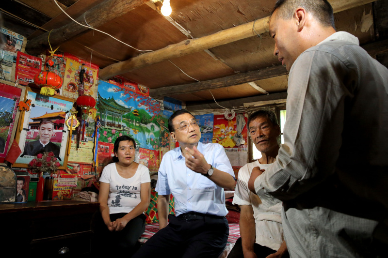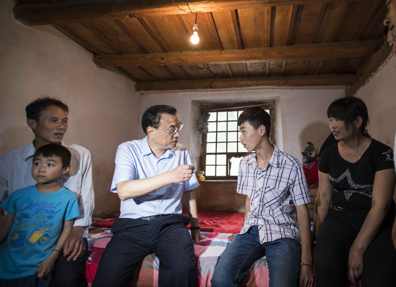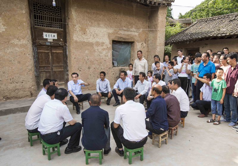 【李克强崎岖山路颠簸一小时考察脱贫攻坚】沿着崎岖山路,李克强10日乘车颠簸一小时,深入陕西宝鸡坪头镇大湾河村考察脱贫攻坚。总理走访两户人家询问收入、医保等情况,坐在院子里与村民交流。该村已被列入易地扶贫搬迁计划,村民们都盼着尽快搬迁。总理说,期待你们搬迁后生活有奔头,过上好日子。