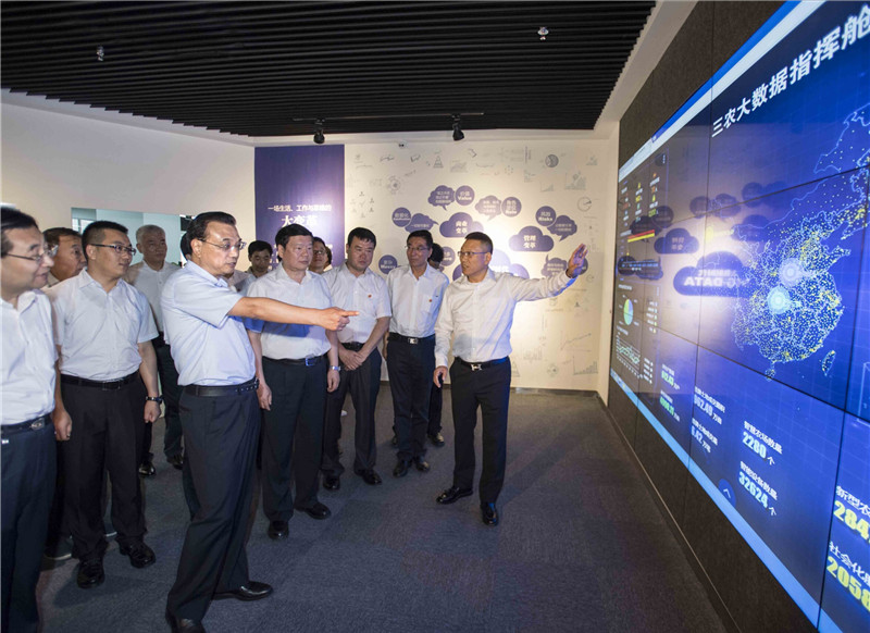 【李克强:农业既要靠天更要靠“云”】李克强10日考察陕西杨凌农业高新技术产业示范区,打破原定行程走进杨凌农业云公司,饶有兴趣驻足观看一张涵盖土地交易、智慧农场等三农大数据云地图。总理说,农业既要靠天更要靠“云”。“农业+信息技术”就不再是弱势产业,“农业+互联网+双创”潜力无限。