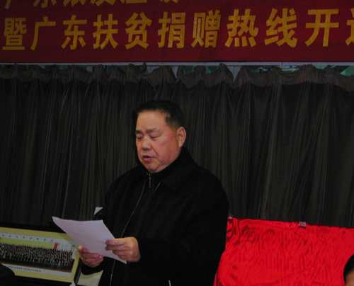 协会荣誉主席、原广州军区副司令员宋文汉宣布广东扶贫捐赠热线开通、捐赠账号启用