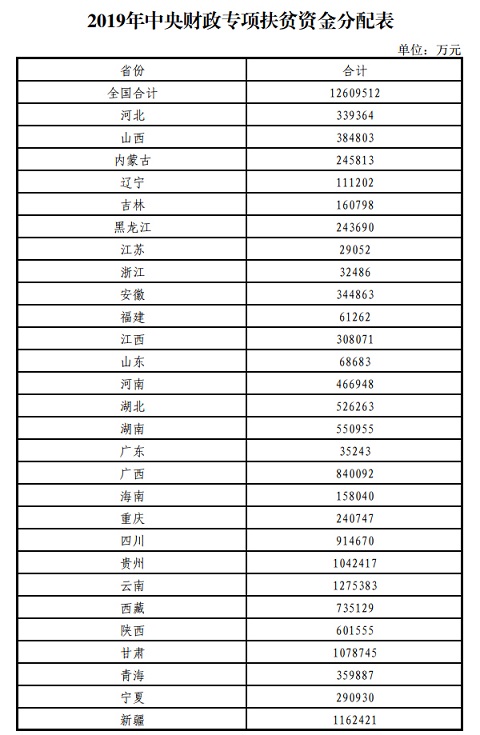 附件:2019年中央财政专项扶贫资金分配表(分省)