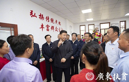 17日上午,正在河南考察调研的习近平总书记来到光山县文殊乡东岳村考察当地脱贫攻坚工作成效和中办在光山县扶贫工作情况。在村文化接待中心,村民代表向总书记汇报了近年来发展特色产业、带动乡亲脱贫致富的情况。