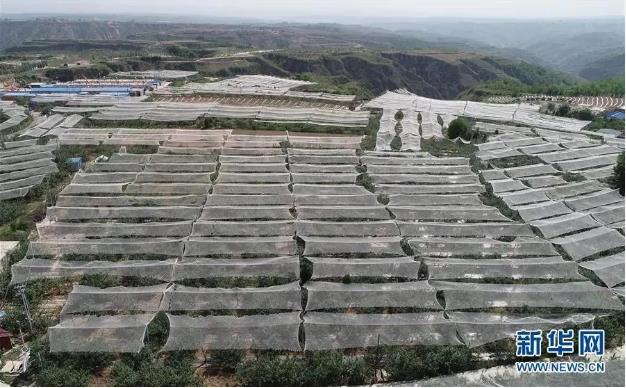 ▲这是陕西省延安市延川县梁家河村山地苹果园(2018年5月24日摄,无人机照片)。新华社记者 邵瑞 摄