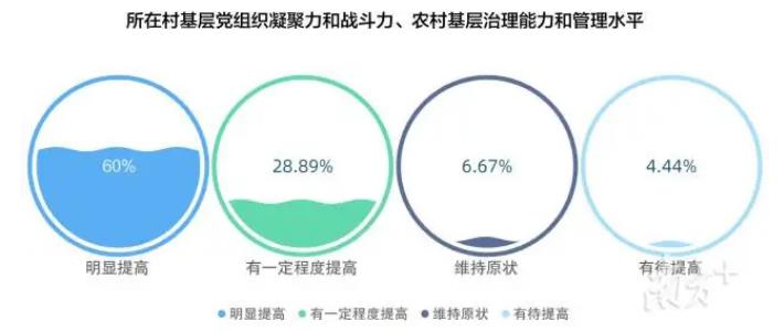 这需要强有力的基层党组织。调查结果显示,通过扶贫工作的锤炼,88.89%的第一书记认为基层党组织能力得到了提高,更有60%的认为“明显提高”。而在基层党组织建设中,从人(“头雁工程”)到物(村级党群服务中心)建设成效均比较突出,平均值超过七成。