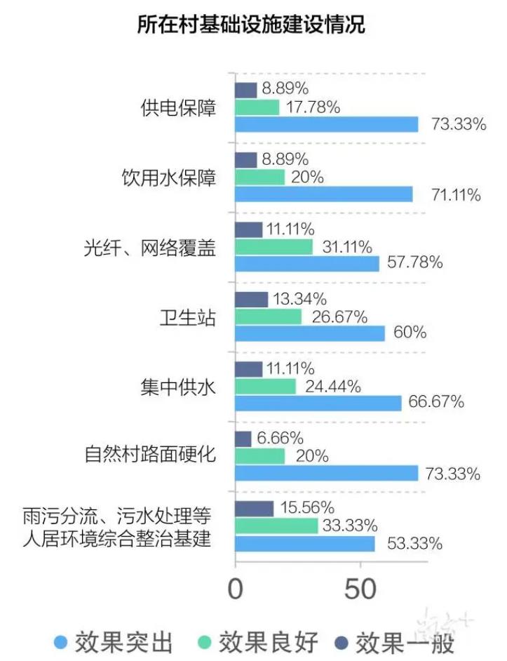 目前,省定相对贫困村200人以上自然村路面硬化任务基本完成,相对贫困村20户以上自然村集中供水率达到92.5%,村庄人居环境综合整治率达到99.97%,50.2%相对贫困村建有农村电子商务服务点,村村通光纤网络任务基本完成。调查结果印证上述工作进展。基础设施建设的有效率基本达到90%左右。