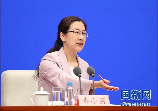 ▲图为国务院新闻办新闻局副局长寿小丽邀请记者提问。(焦非 摄)