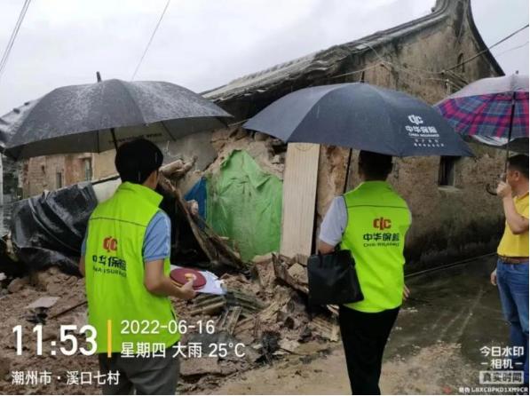 潮州市溪口七村刘大爷农房因暴雨导致围墙倒塌。接报案后,中华财险潮州中心支公司紧急部署、积极应对,由分管领导带领公司理赔骨干赶赴案发地,快速开展查勘工作。在了解现场情况后,为解决农户的燃眉之急,中心支公司开通快速理赔通道,简化流程手续,现场完成定损并于当日下午将9480元赔付款打至刘大爷账户,为其早日重建家园提供资金支持。中华财险广东分公司密切关注预警信息,通过官方订阅号发布防灾减灾小贴士,宣传提醒灾害天气及防范措施,并向客户发送提醒短信或防灾防损通知书,帮助客户进行风险排查服务。同时根据防灾减损服务工作指导方案,制定汛期防灾减损排查计划,强化责任分工,“地毯式”推进排查工作。