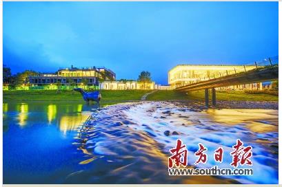 ▲从化区“乡村振兴·文艺赋能——2020广州乡村文艺空间”文艺活动在生态设计小镇举行。图为鸭洞河畔生态设计小镇夜景。受访者供图