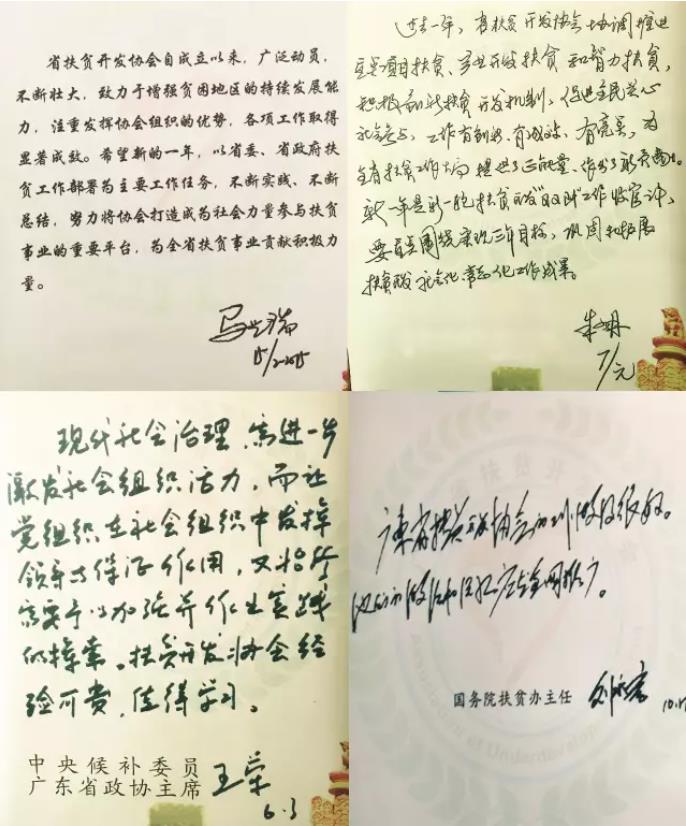 ▲马兴瑞、朱小丹、王荣、刘永富等领导对广东省扶贫开发协会工作的批示