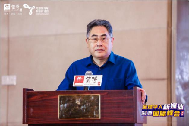 ▲钟韶彬在首届“全球华人新媒体创业国际峰会”上开幕致辞发言。