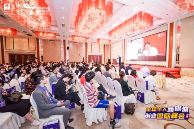 ▲钟韶彬在首届“全球华人新媒体创业国际峰会”上开幕致辞现场。