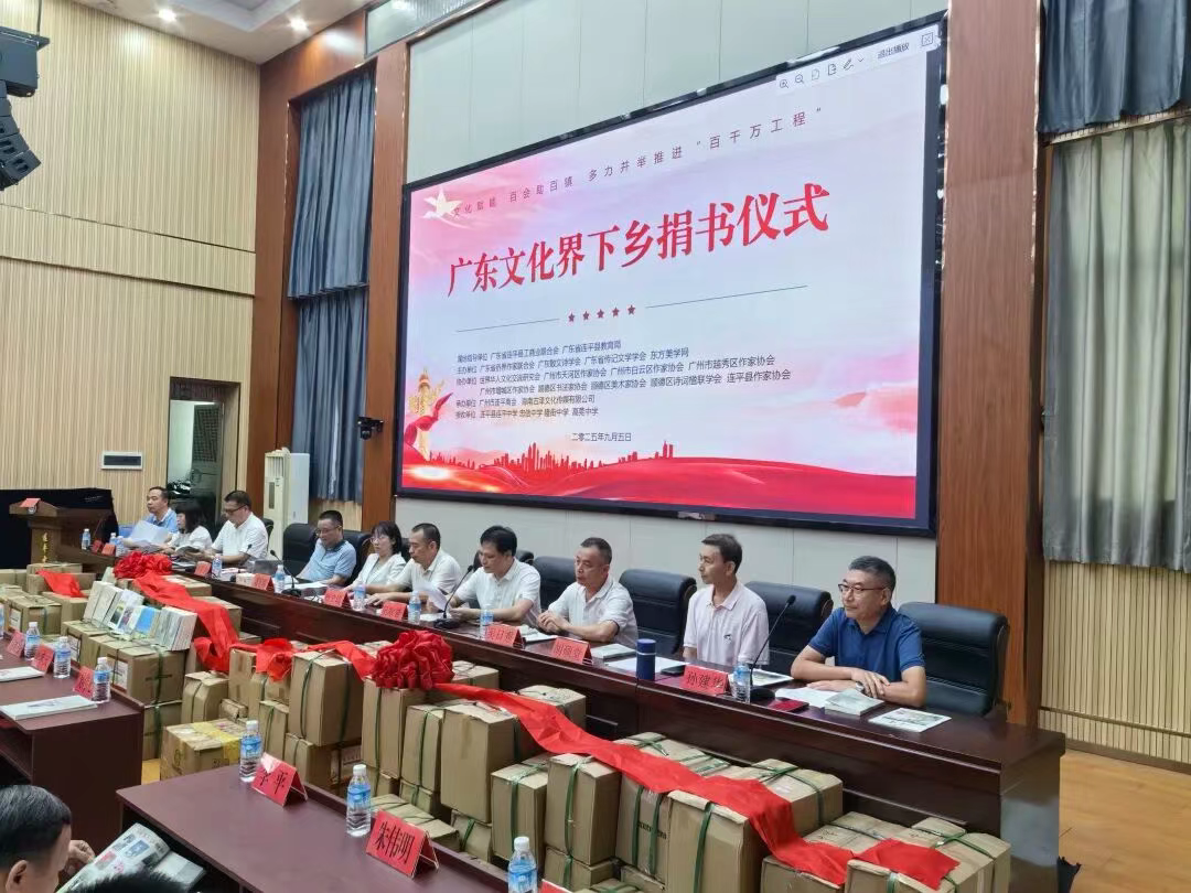 9月5日,广东省侨界作家联合会、广东散文诗学会、广东省传记文学学会等近30家文化团体携手走进河源市连平县,在连平中学联合举办广东作家捐书公益行动暨吴耕渔诗集《唐古拉山与沱沱河》首发仪式。活动现场不仅向连平中学、忠信中学等多所山区学校捐赠图书近五千册、书画作品百余幅,更正式发布“岭南文化进校园”三年计划,以“物资捐赠+精神滋养+长效服务”的三重举措,为山区教育发展与“百千万工程”落地注入鲜活力量。