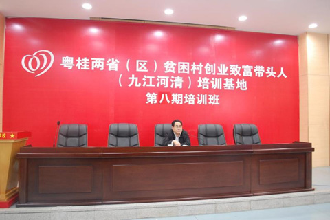 本网讯(实习生 李杰报道) 12月7日下午,粤桂两省(区)贫困村创业致富带头人第八期培训班在佛山市南海区九江职业技术学校开班。省人民政府特聘参事、南方扶贫开发研究院院长、粤桂两省(区)贫困村创业致富带头人培训导师团团长钟韶彬为学员做了《加强能力建设,助力乡村振兴》的专场辅导报告,让来自广东省湛江市和云浮市的93名贫困村创业致富带头人对乡村振兴与自己的关系以及如何进行自身和企业的能力建设有了更具体、深刻的思考,讲座深受学员欢迎,辅导产生良好反响。
