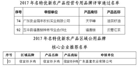 三种通过广东省扶贫农产品认证农产品登上第二届名特优新农产品名单