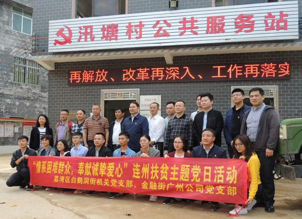 加强党建工作,充分发挥村党支部的堡垒作用,以党建促扶贫是准精准扶精准脱贫的重要内容。12月3日、4日,在白鹤洞街党工委书记的率领下机关党支部和金融街广州置业有限公司党支部一行24人,深入连州汛塘村开展“情系困难群众 奉献诚挚爱心”扶贫主题党日活动。