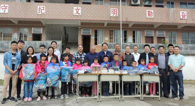 (图:与汛塘小学老师、学生合影)