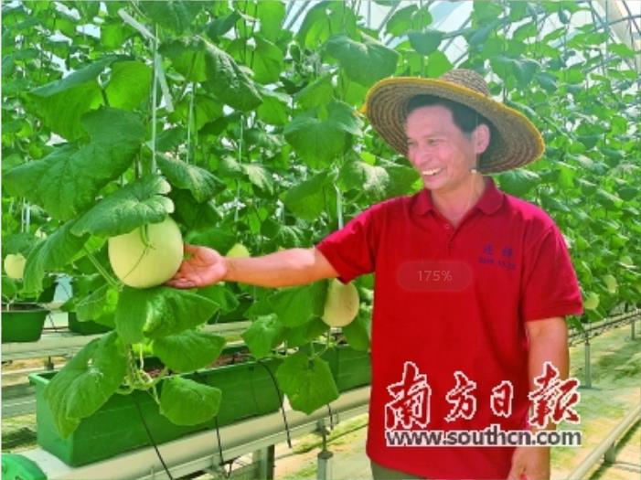 这几天上午,在现代农业科技示范园的温室大棚里,村民陆国建每天都会站在作业车上,仔细对西瓜种植做日常检查,不时摘掉多余的侧芽防止影响生长。