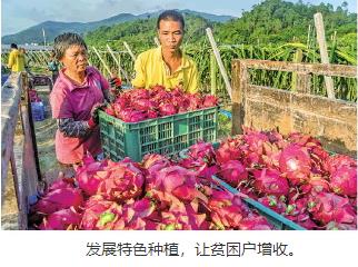绿水青山就是金山银山,除了种植柑桔,发展火龙果、蔬菜、紫米等产业是脱贫致富的主要抓手,硕果累累。天堂片引入蔬菜种植的农业龙头企业种植蔬菜1500亩,以“公司+合作社+农户”的模式,带动贫困户79户年均增收1000多元;水台镇种植粉葛1200亩,年产量达2400吨,产值800万元,其中62户贫困户种植129亩,平均户增收1.66万元;六祖镇洒落村300亩火龙果种植基地,为28户贫困户每户每年增加500元固定收益;里江村380亩台湾红心番石榴种植基地,带动里江村贫困户38户,户均年增收1315.78元;引进新兴县微丰农业科技有限公司、新兴县耕田翁农业有限公司、新兴县天堂镇五谷丰农产品专业合作社等农业企业,以“合作社+农户”的模式种植紫米2000多亩,带动贫困户143户,户年均增收1500多元……