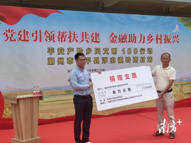 平安产险潮州中支党支部向岭湾村村委捐赠3万元党建共建项目资金。