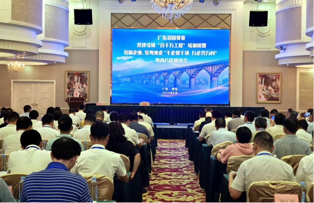 日前,广东省国资委在罗定市组织召开党建引领“百千万工程”培训班暨“千企帮千镇 万企兴万村”粤西片区推进会,广东省“百千万工程”指挥办,省农业农村厅(乡村振兴局)、省国资委、云浮市、罗定市相关领导以及省属企业、部分驻粤央企有关负责人和驻村第一书记共200余人参加推进会。广东南粤分享汇控股有限公司(以下简称“南粤分享汇”)现场汇报省国资国企“千企帮千镇 万企兴万村”工作信息系统建设和“罗平稻米”帮扶臻品打造成果情况。