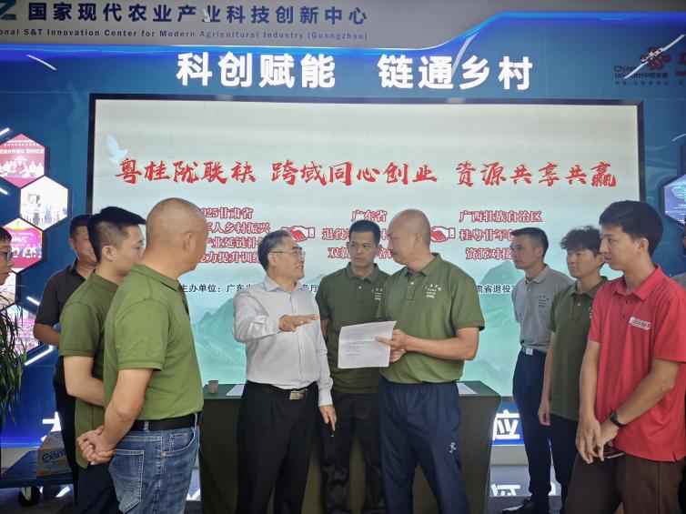 2025年9月15-19日,由广东省退役军人事务厅、广西壮族自治区退役军人事务厅、甘肃省退役军人事务厅共同举办的2025年粤桂甘退役军人乡村振兴“双新双创”联合培训班在穗开班。广东省政府参事、省乡村发展协会理事长钟韶彬应邀为其作首场专题授课,首推退役军人乡村振兴“双新双创”四有五新六链七合八力法。