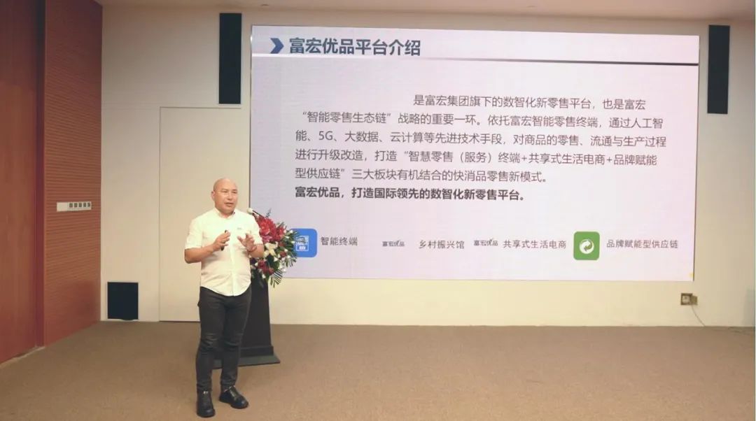 富宏优品(广州)供应链有限贵公司董事长吴寿江介绍“富宏优品乡村振兴万机联盟”模式