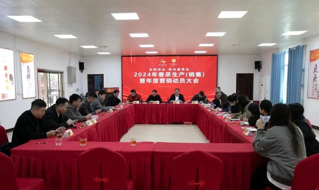 他强调,2024年是永和农业和积庆里茶业全员营销年和管理提升年。为了坚定不移地落实持续稳定经营战略,永和农业·积庆里茶业全体员工要拿出龙腾虎跃、鱼跃龙门的干劲闯劲,心往一处想,劲往一处使,以奋斗的你我成就奋进的积庆里,奋力打赢2024营销攻坚战,为全面完成公司全年的营销目标群策群力、聚力共赢。
