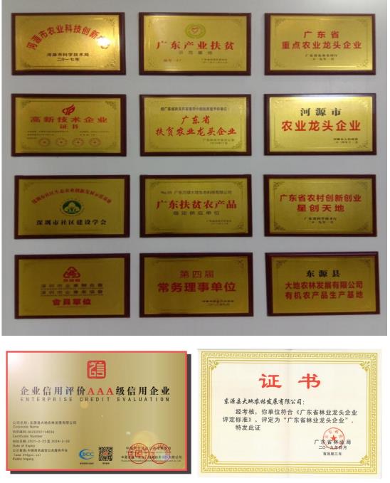 ▲大地农林多年来获得多项荣誉。