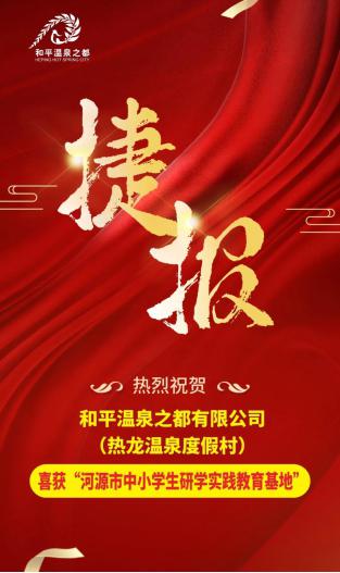 祝贺和平温泉之都(热龙温泉度假村)喜获“河源市中小学生研学实践教育基地”
