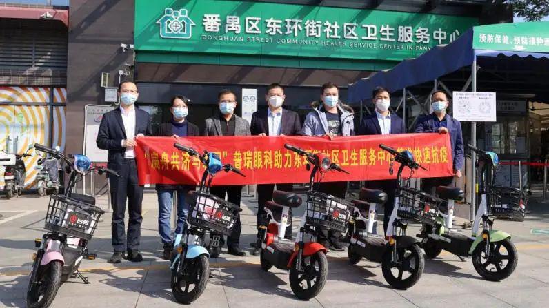 12月8日上午,“广州番禺普瑞眼科医院(下称”番禺普瑞“)向东环街社区卫生服务中心捐赠五辆电动车自行车,用于东环街社区卫生服务中心进行疫情流调和阳性患者核酸采集。