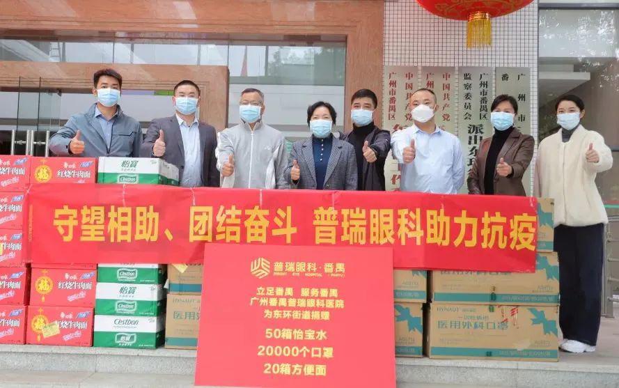 支持抗疫,番禺普瑞一直在行动。12月5日,番禺普瑞还向东环街道捐赠50箱怡宝水、20000个口罩、20箱方便面作为抗疫物资。