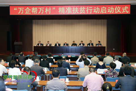 2015年10月17日上午,全国工商联、国务院扶贫办和中国光彩会联合举行“万企帮万村”精准扶贫行动启动仪式。全国政协副主席、全国工商联主席王钦敏,国务院扶贫办主任刘永富出席启动仪式并讲话。