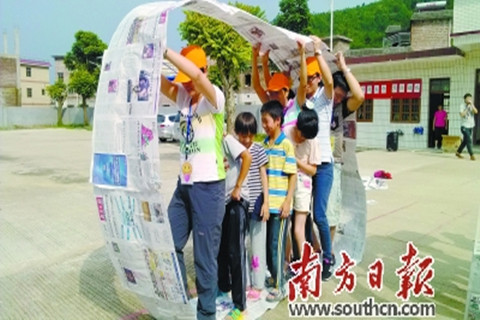 社工人员在和留守儿童开展活动。资料图片