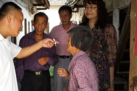 座谈会后,李书记与周副院长兵分两组,对东河村的部分贫困户进行看望与慰问,与贫困户亲切交谈,了解他们的生产生活的具体情况,并为他们送去了慰问金并致以节日的祝福。