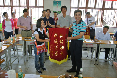 最后,因集团公司的蚕桑产业扶贫等帮扶项目在上一轮“双到”扶贫点横坑村凸显持续的脱贫致富效果,村民代表怀着感激之情,自发地前来东芒村,向柯董事长赠送了锦旗,以表谢意。